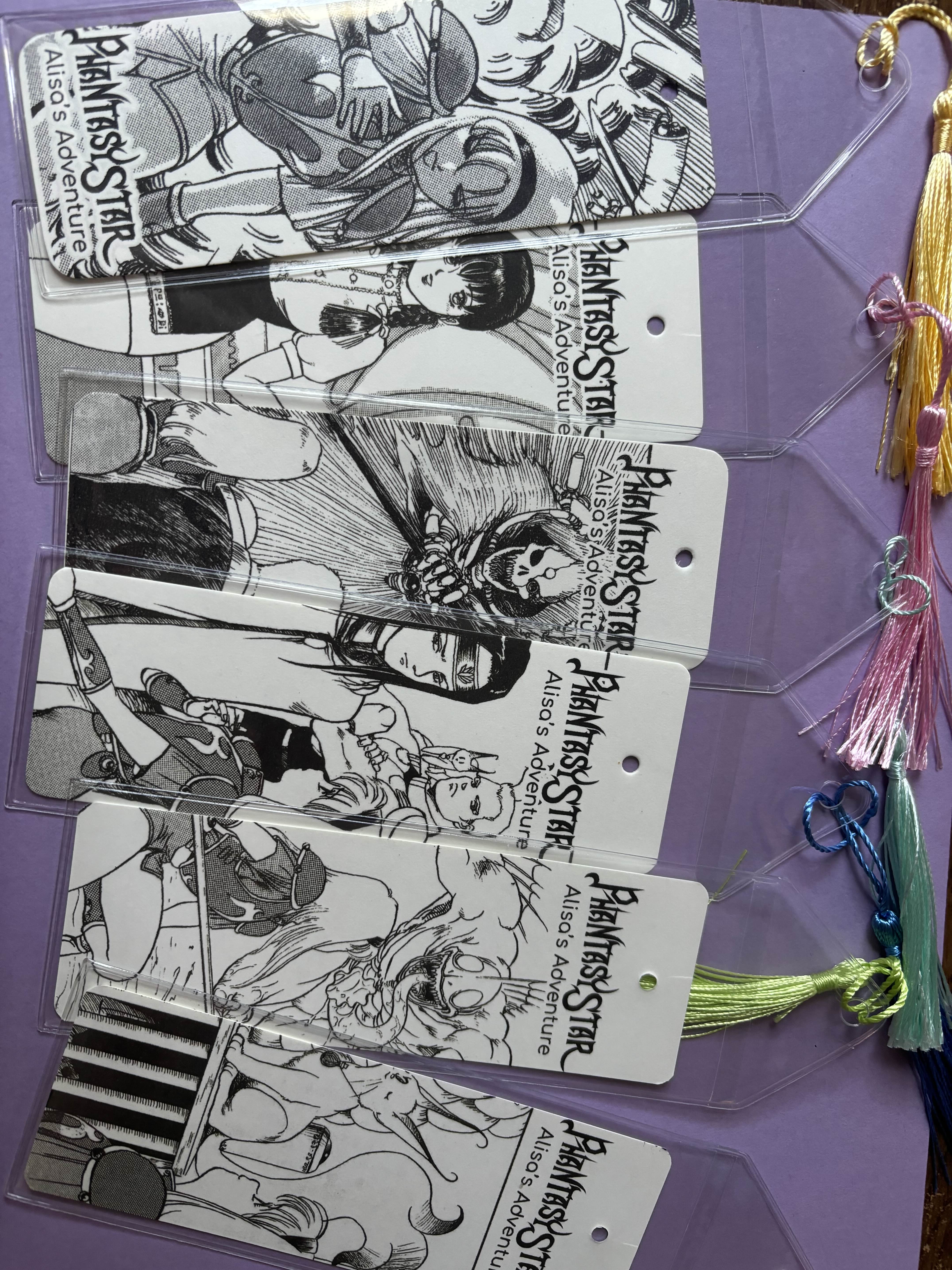 Bookmarks featuring artwork by Kunio Aoki from the book Phantasy Star: Alisa’s Adventure.