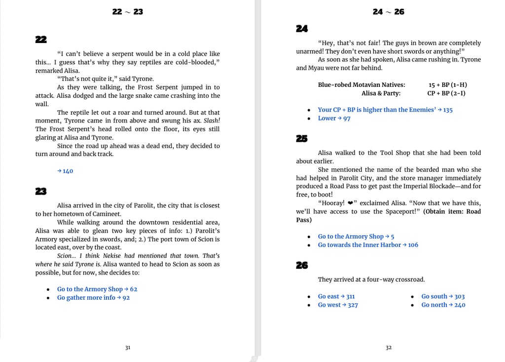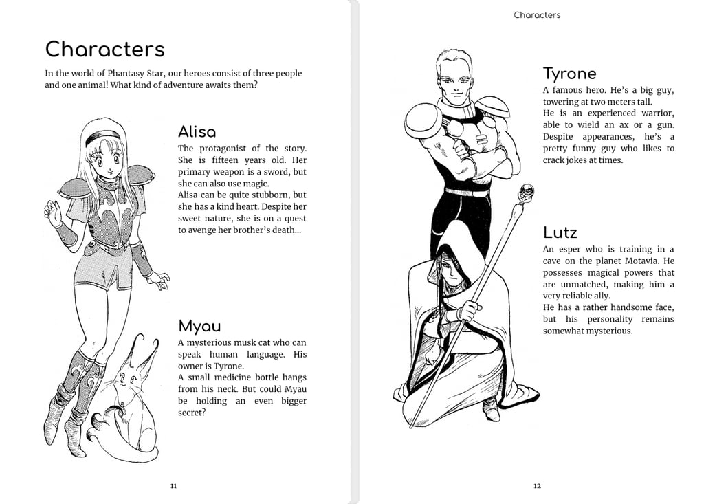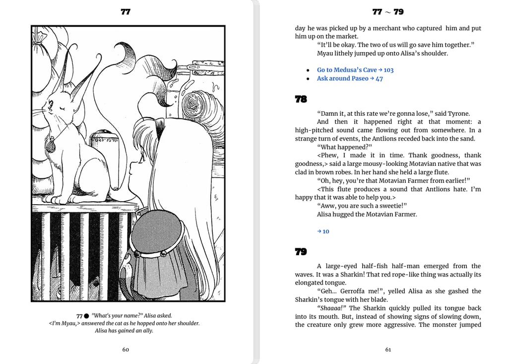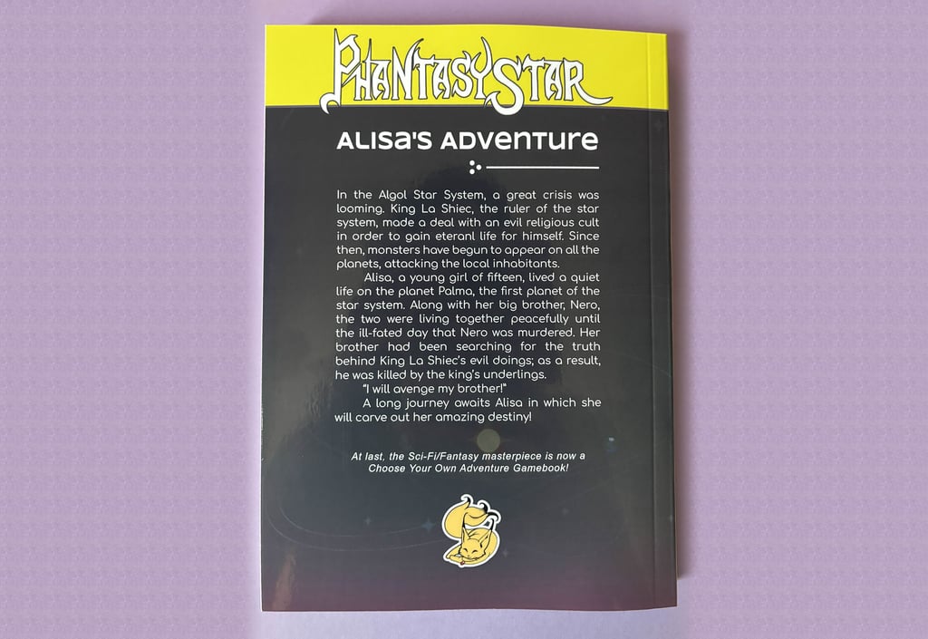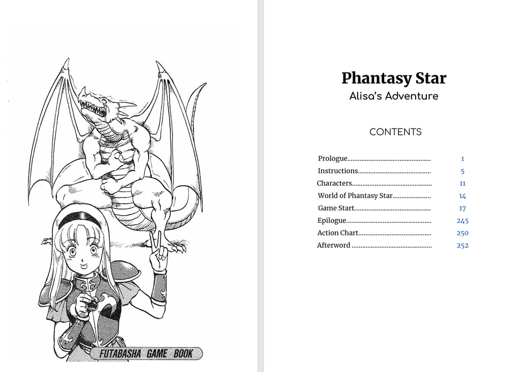 An unofficially translated gamebook based on the original Phantasy Star game, featuring Alisa Landale, Myau, Tyrone and Lutz.